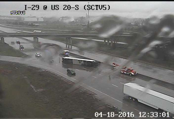 It took crews nearly 4 hours to clear I29 Northbound near Exit 144B of an overturned Semi on Monday. Sioux City Police, Sioux City Fire Rescue, Siouxland Paramedics, Iowa State Patrol, Iowa Dot and Meier Towing all assisted. The driver of the truck refused any treatment.