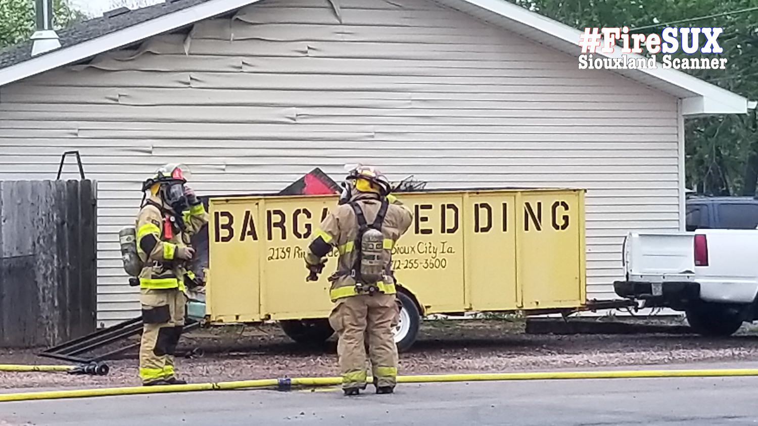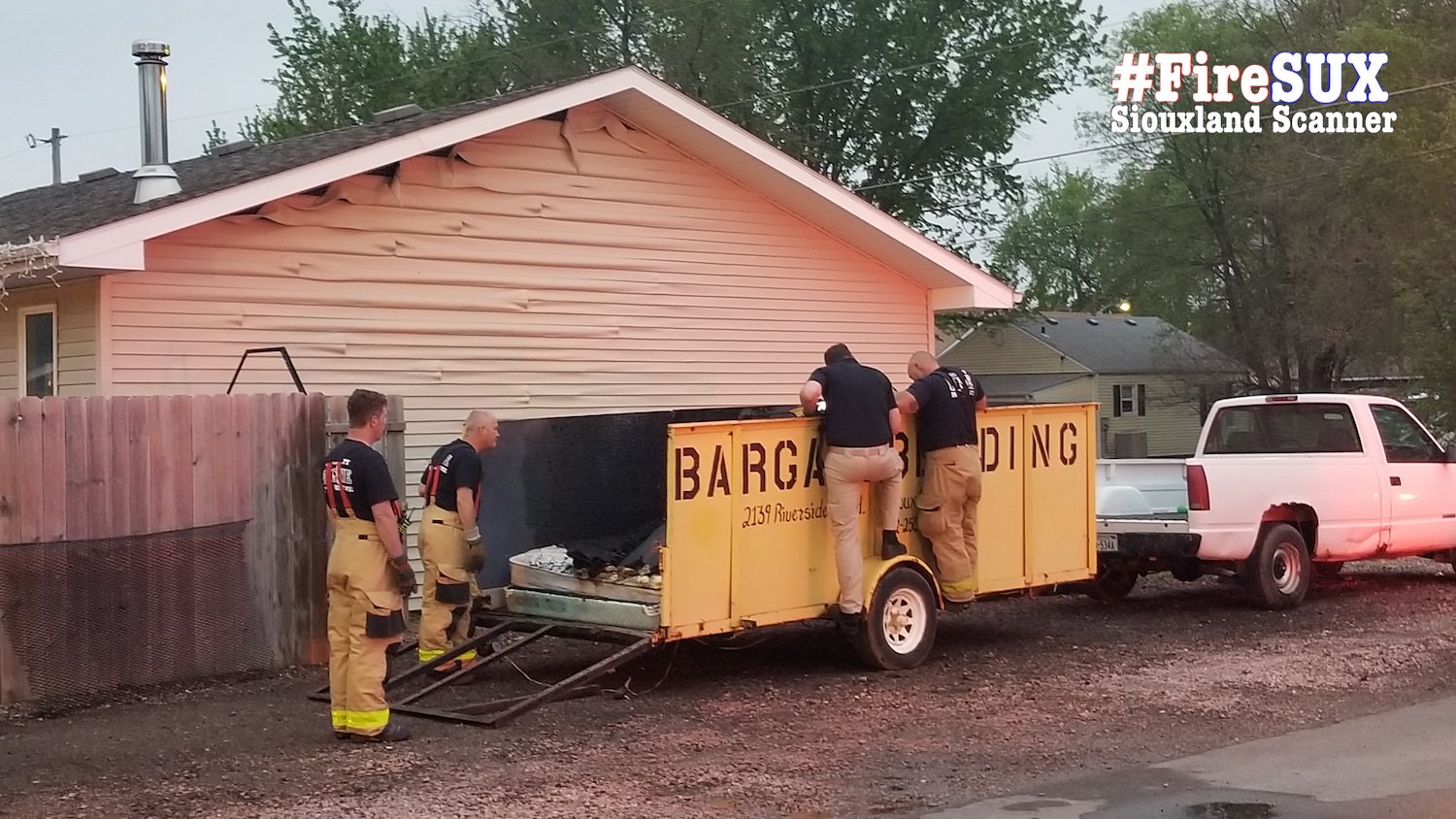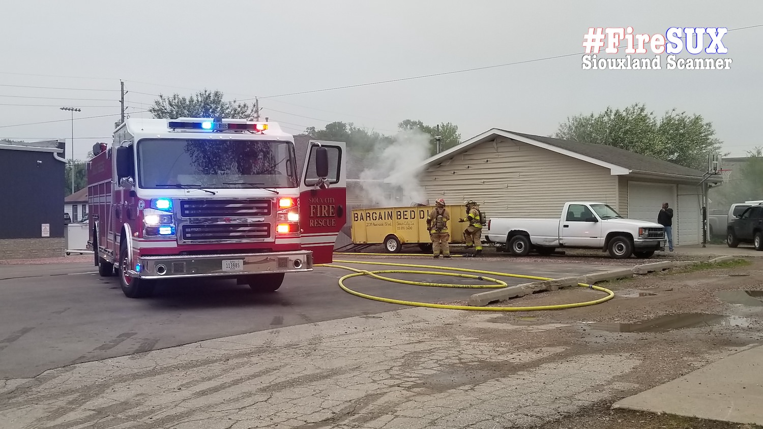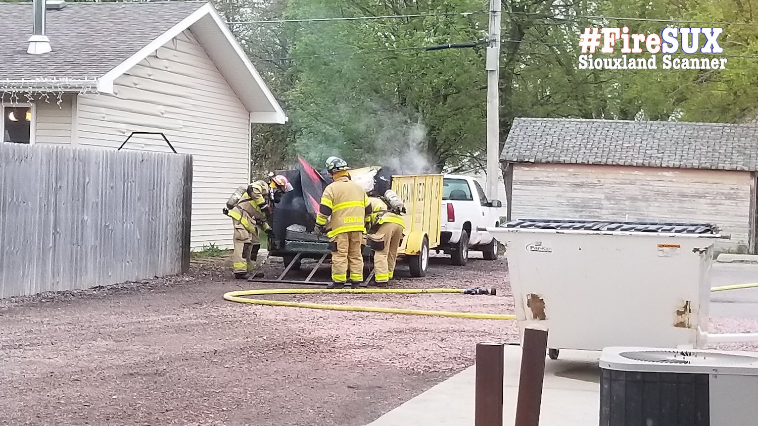 About 7:45 pm Sioux City Fire responded to 2139 Riverside Boulevard for a dump trailer loaded with mattresses on fire. The fire was quickly extinguished but did cause damage to a garage next to it and the trailer and its contents.