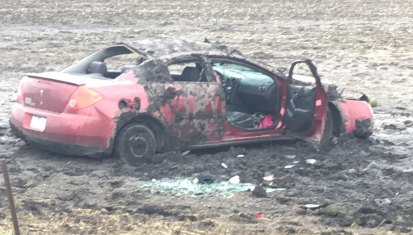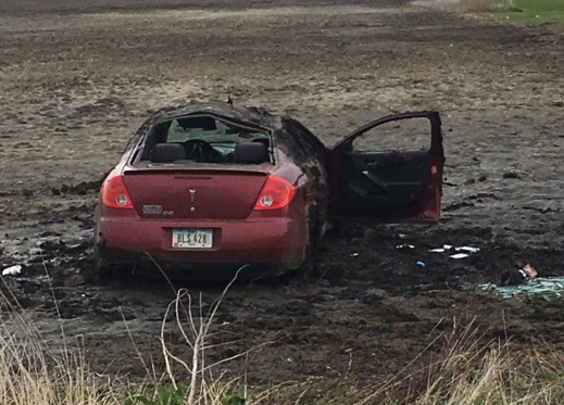 At about 9:00 AM, Sherrif deputy attempted to stop a Red Pontiac on Old Highway 75/K45 in the Sloan area. The driver of the car tried to flee and led the Deputy on a chase Northbound on old 75/K45 to Salix. Officers said it looked like a back seat passenger in the car threw something out the window and speeds reached 107 going into the curve. The chase ended in a rollover accident near Salix. The driver fled on foot and Deputies located him in a sewage lagoon 300 yards from the accident. Three of the four occupants in the car were transported to Mercy by Sloan and Salix ambulances with non-life threatening injuries.