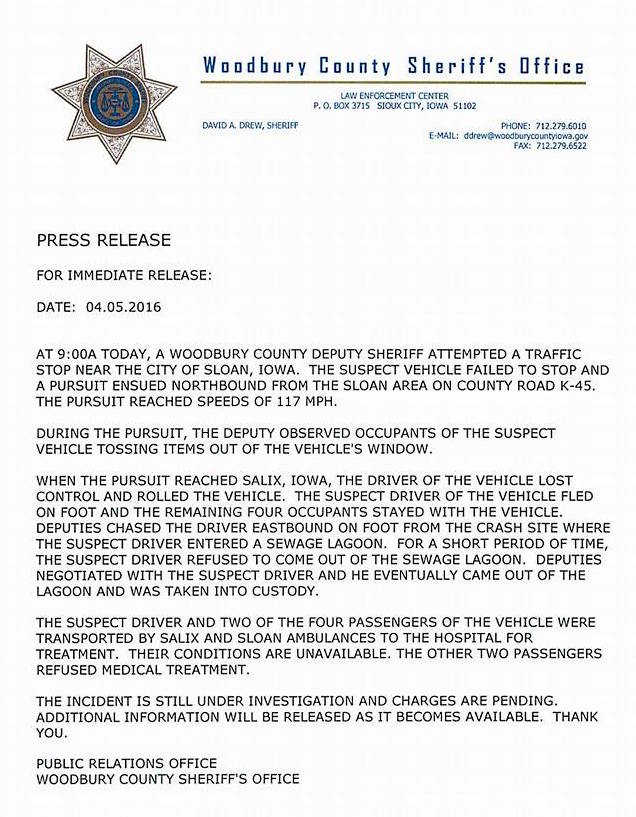 Dashcam Video released by Woodbury County Sheriff at the end of this story.